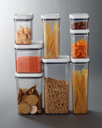 Have you been searching for the perfect storage containers? The search is over! These POP canisters are airtight; stackable; space-efficient and BPA FREE! Your dry foods and goods will remain fresh thanks to the unique push-button lid. This lid creates an airtight seal with just the touch of a finger. Designed for modular stacking; these containers come in a range of square or rectangular shapes. The corners of the container allow for easy pouring. Not just for food; these containers are also great for craft supplies; small toys; and more! Available in 11 different sizes. Each container sold separately. Constructed from plastic. Dishwasher Safe! Intended for Pantry and Countertop storage only; NOT safe for microwave or freezer use. Need some ideas for filling these containers? 5.5 qt. Container is the ideal size for bulk cereals; pretzels; chips and more. 3.4 qt. Container is the ideal size for boxed cereal; grains and more. 2.1 qt. Container is the ideal size for spaghetti; linguine; lasagne and more. 4.0 qt. Container is the ideal size for a 5 lb. bag of flour or sugar. 2.5 qt. Container is the ideal size for rice; pasta; breadsticks and more. 2.4 qt. Container is the ideal size for rice; cookies; crackers and more. 1.5 qt. Container is the ideal size for granola; beans; licorice and more. 1.5 qt. Rectangular Container is the ideal size for a 1 lb. bag of coffee beans. 0.9 qt. Container is the ideal size for a box of brown sugar. 0.5 qt. Container is the ideal size for tea bags; candy; sugar cubes and more. 0.3 qt. Container is the ideal size for spices; dried chilies; bouillon and more.